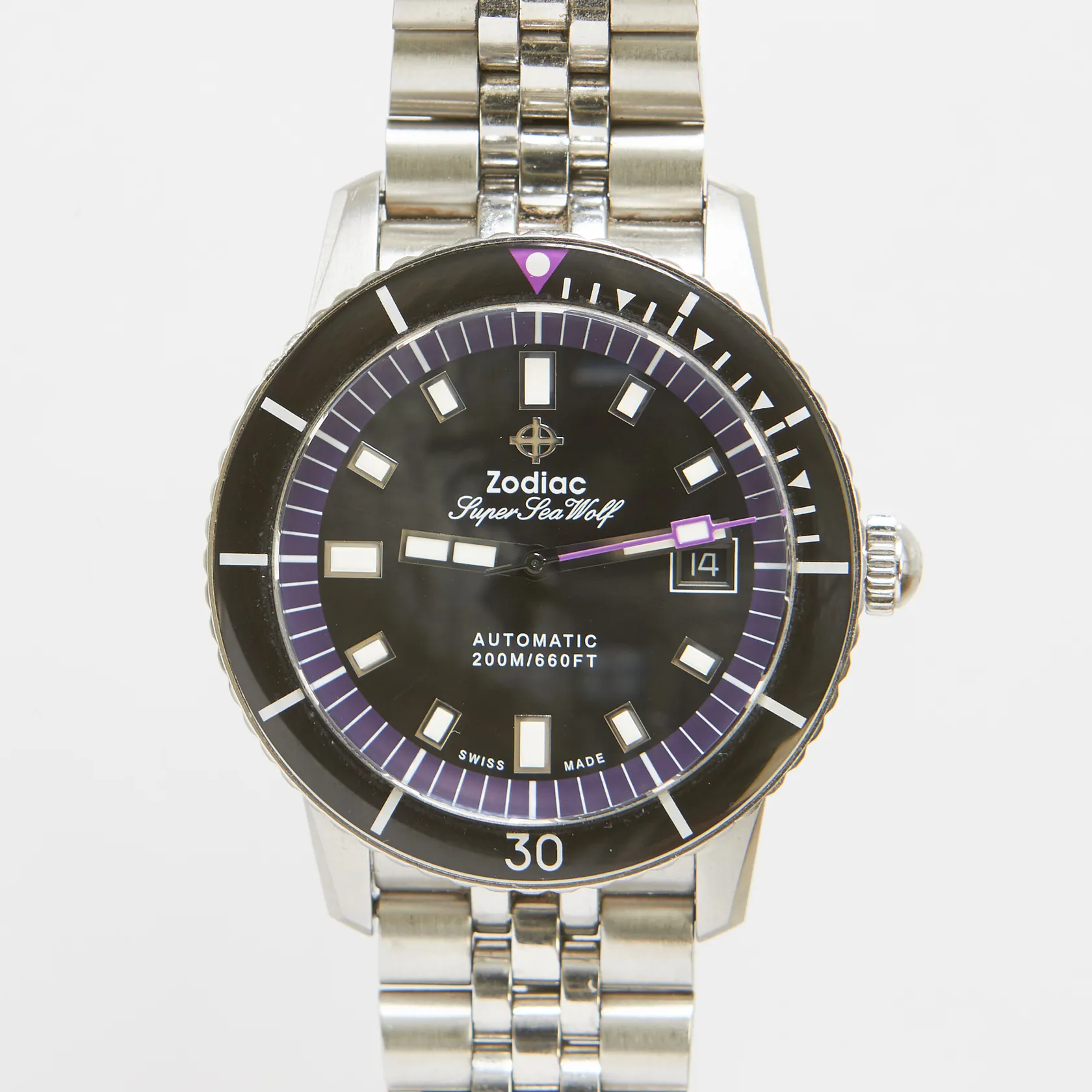 Herrur Zodiac Super Sea Wolf Liberty Edition, stål, automatisk, 40,3mm, ref: ZO9285, snr: 00065, datum, stållänk, viklås, extra gummiband, extra lädernatoband, box