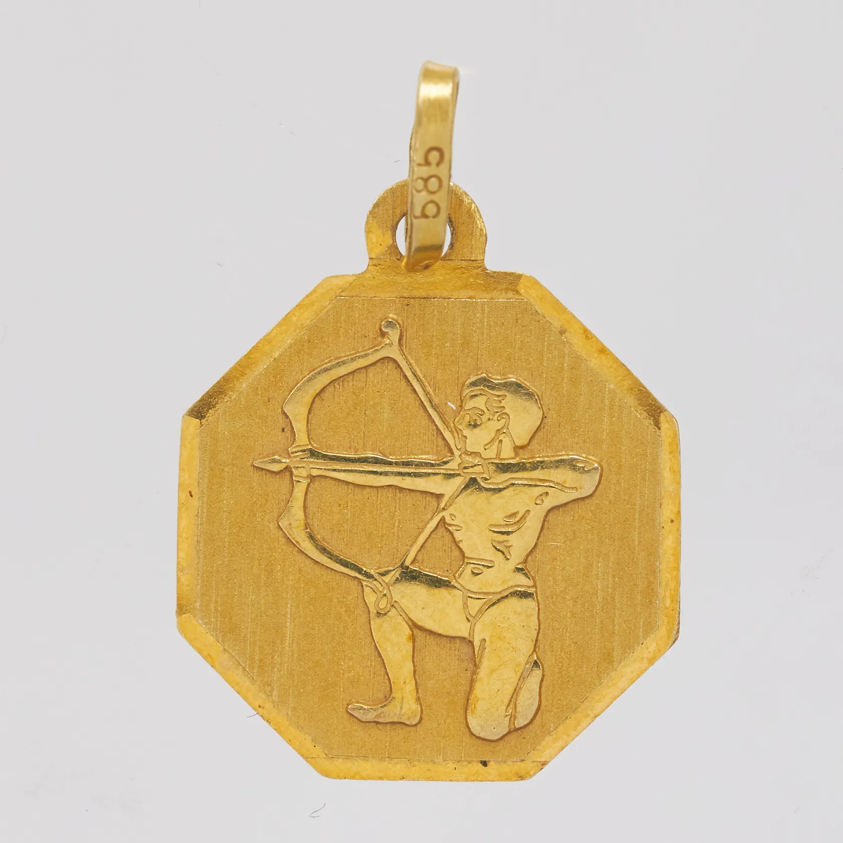 Hänge stjärntecken skytten, längd ca 19mm inkl ögla, bredd 1-12,5mm, 14K Vikt: 0,9 g.
