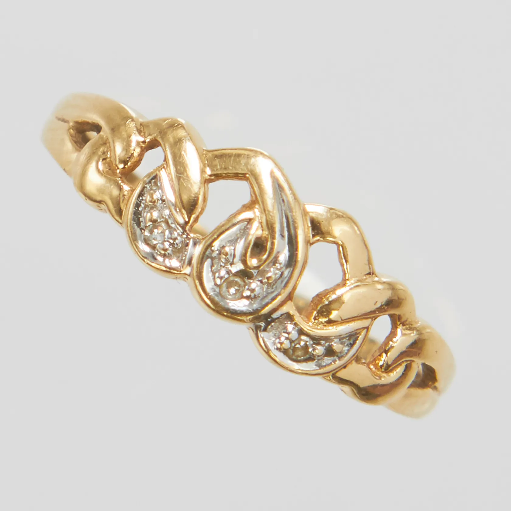 Ring, Ø16, åttkantslipade diamanter 3xca0,005ct, tvåfärgad, något skev, GHA, 18K Vikt: 1,3 g.