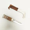 Samekniv, längd ca 21cm, handtag i renhorn samt trä, dekorerad slida i renhorn, trä och samt skinn, signerad F.O.