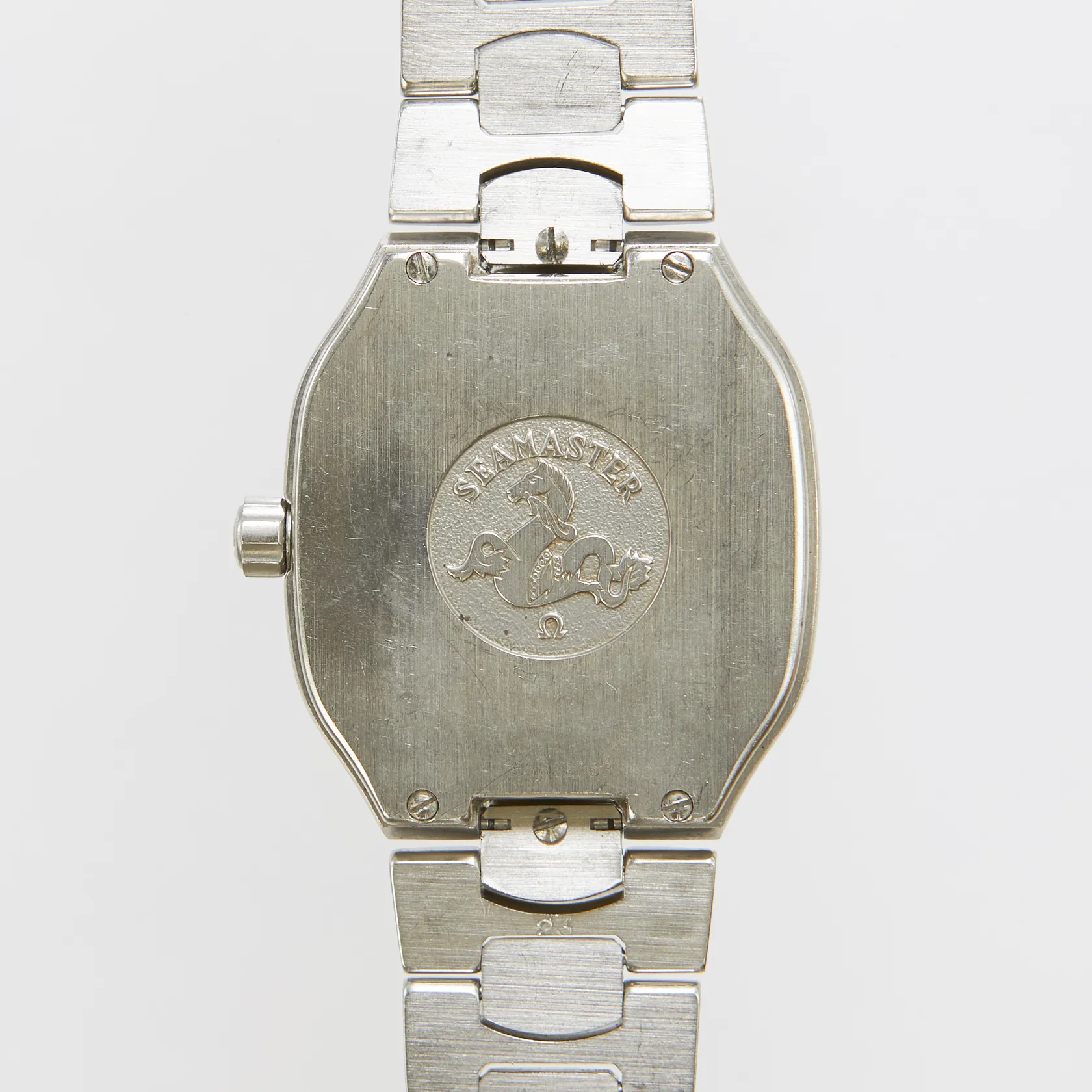 Herrur Omega Seamaster Polaris, stål, quartz, 31,9mm, ref: 386.0822, snr: 53822753, ca 1991, Cal. ETA 988.431 ej märkt Omega, dag, datum, alarm, kronograf, timer, stållänk, viklås, inga tillbehör.