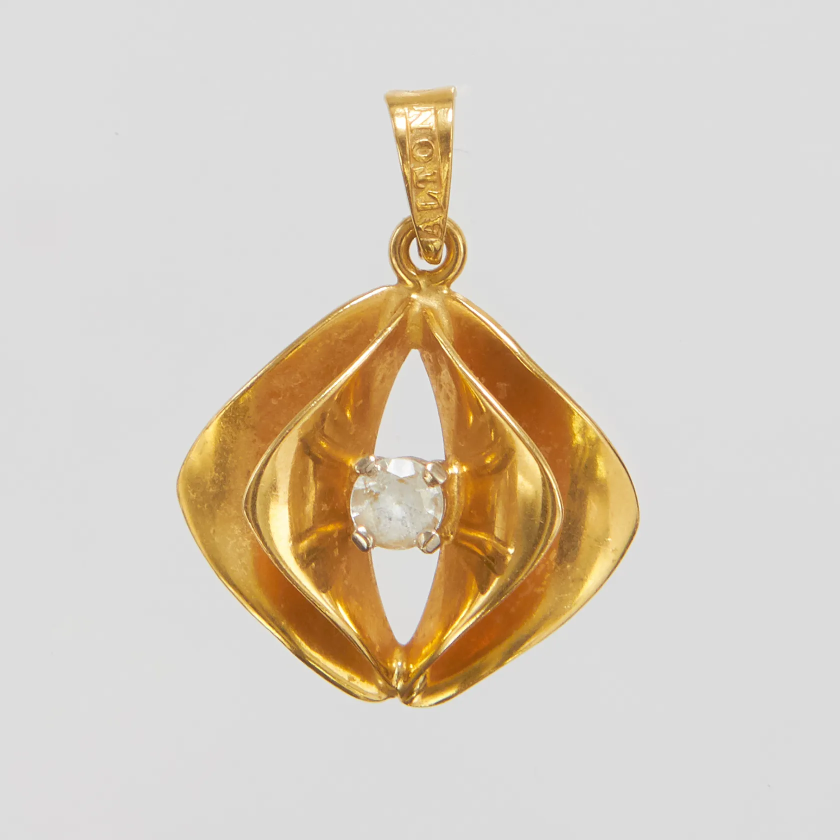 Hänge, vit sten, längd ca 20mm inkl ögla, bredd 14,5mm, 18K Vikt: 1,4 g.