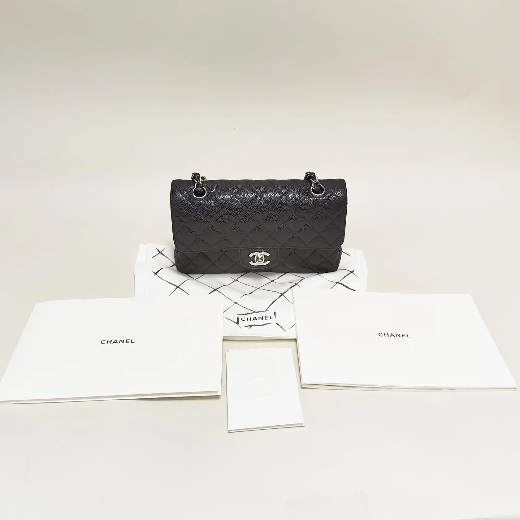 Väska Chanel Sac Rabat, Kornigt kalvskinn, silverfärgad metall, mått 14,5x23x6cm, refnr: A01113-Y01864-C3906, serienr: 28354722, mindre bruksslitage, mindre fläckar på insida, kvitto samt inköpesbevis från Chanel Frankrike Paris 2019, dustbag.