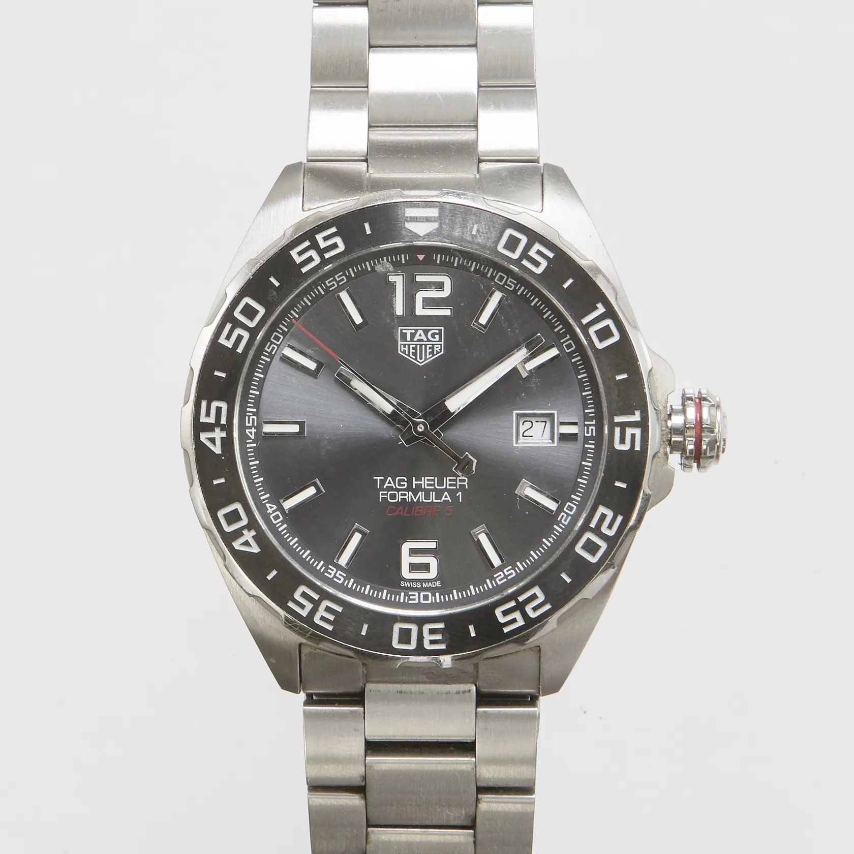 Herrur Tag Heuer Formula 1, stål, automatisk, 43mm, ref: WAZ2011, snr: BRW1170, Cal. 5, safirglas, datum, stållänk, viklås med dykförlängning, total längd: 20,5cm, inga tillbehör.