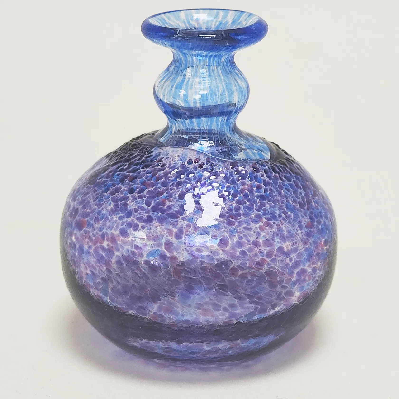 Miniatyrvas, modell: Antikva, Bertil Vallien, Kosta Boda, höjd: ca.6,5cm, lila och blått glas, signerad samt numrerad (otydlig numrering)