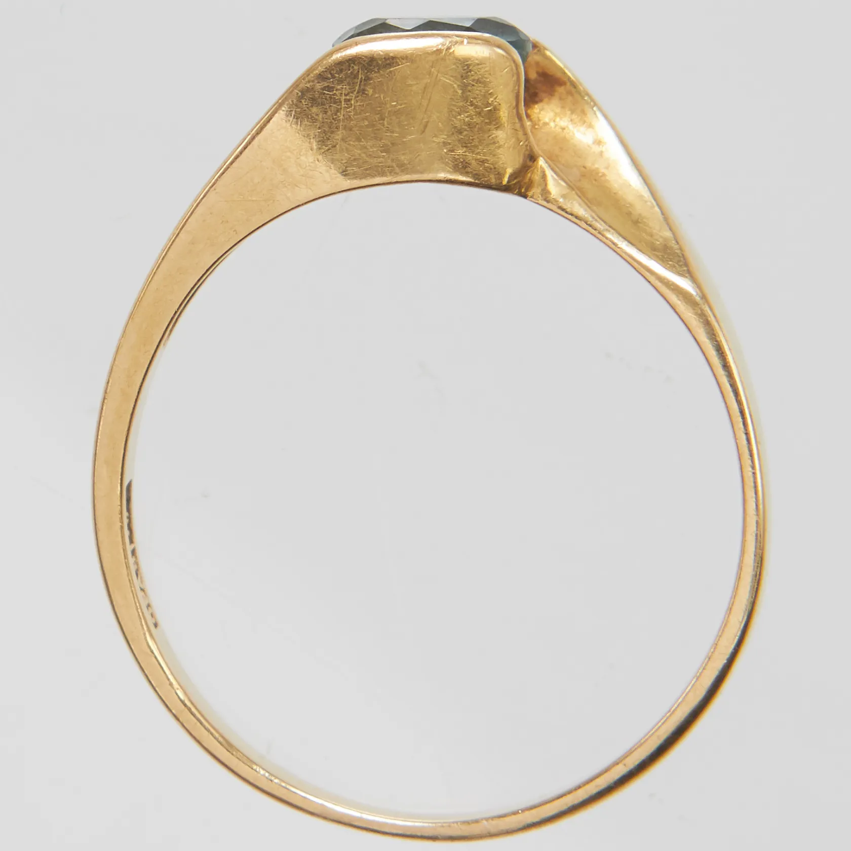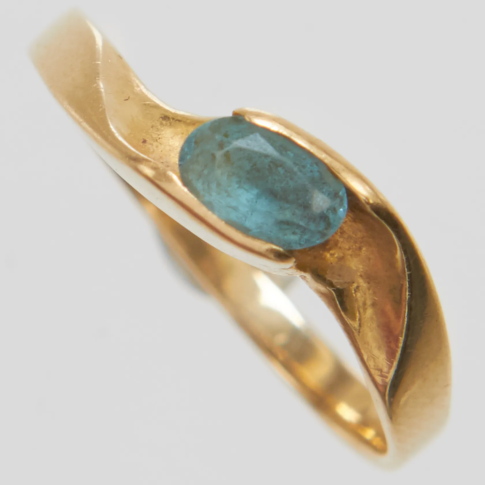 Ring med en blå topas, Ø18, bredd: 1,9-4,7mm, 18K Vikt: 3,1 g.