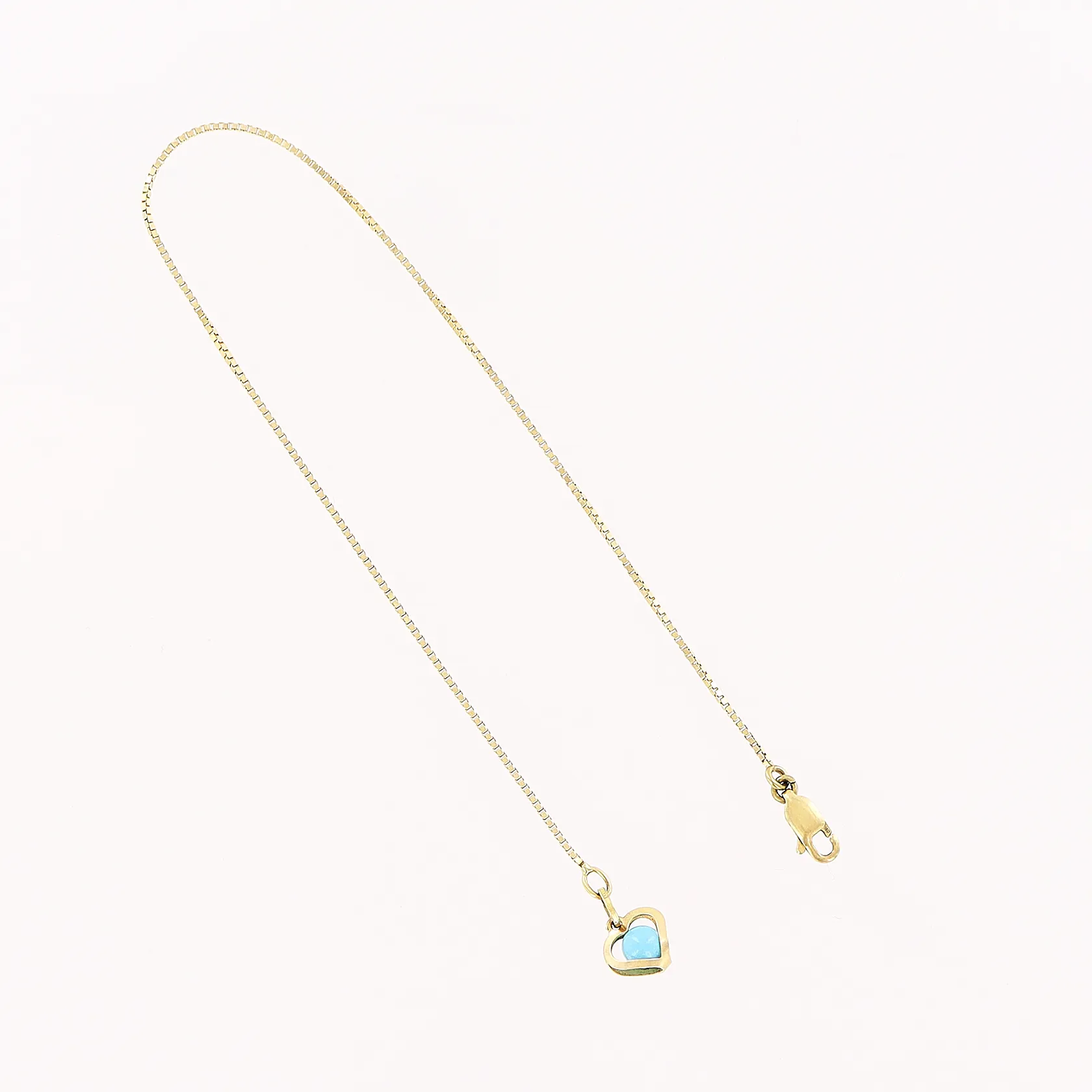 Vristlänk Venezia, 24cm, bredd 1mm, berlock i lås, hjärta med turkos sten, 8,5x14mm, 18K Vikt: 3 g.