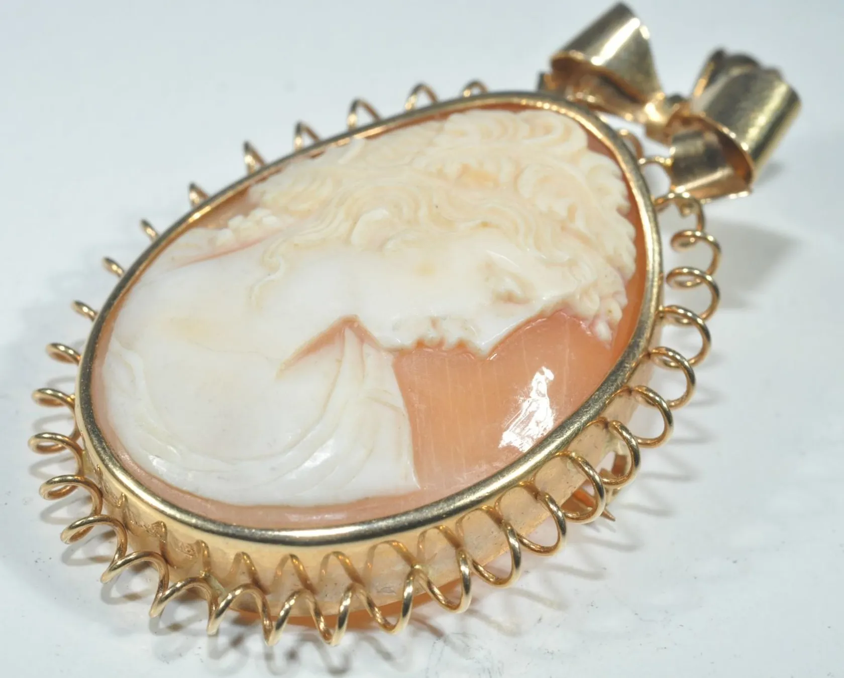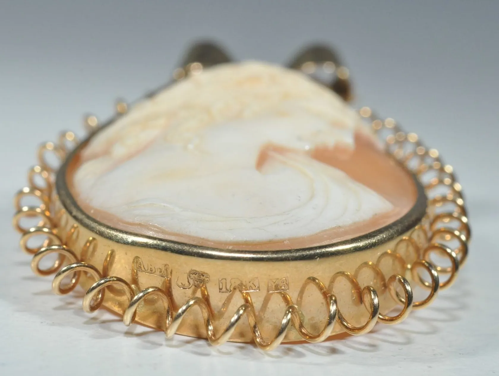Hänge/brosch camé, längd 5 cm bredd 3 cm, 18k Vikt: 10,3 g.