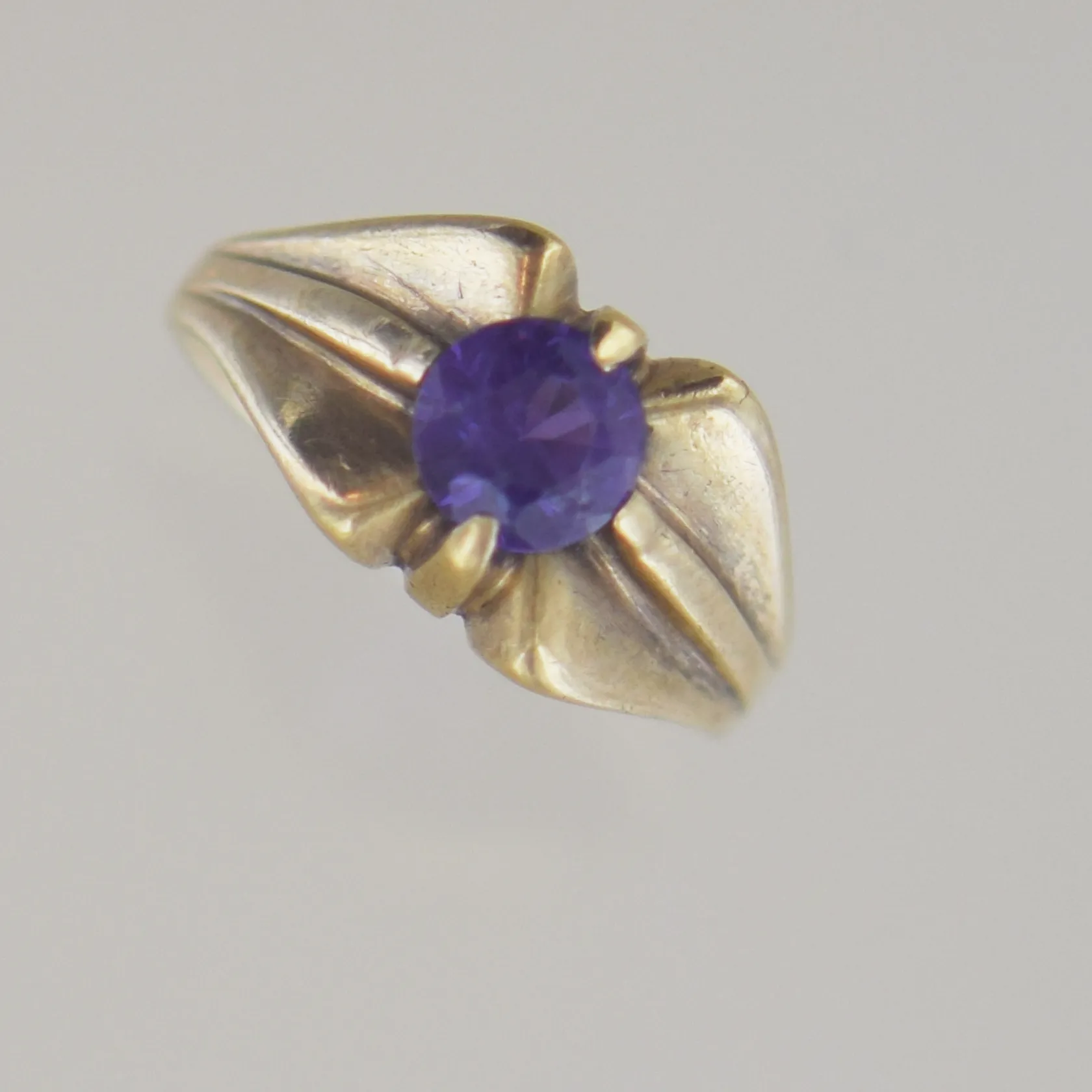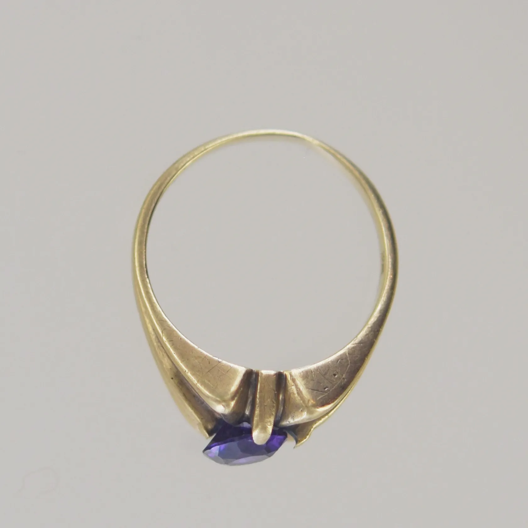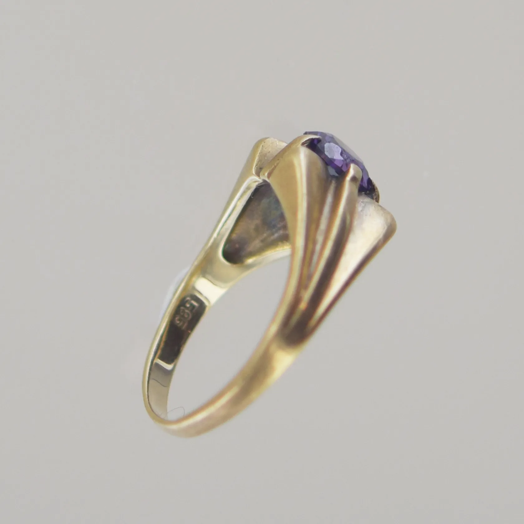 Ring med lila sten,(nagg), Ø 17 mm bredd 2-9 mm, 14k Vikt: 4,2 g.