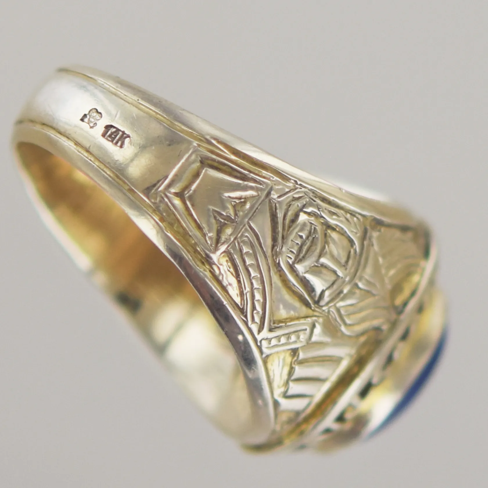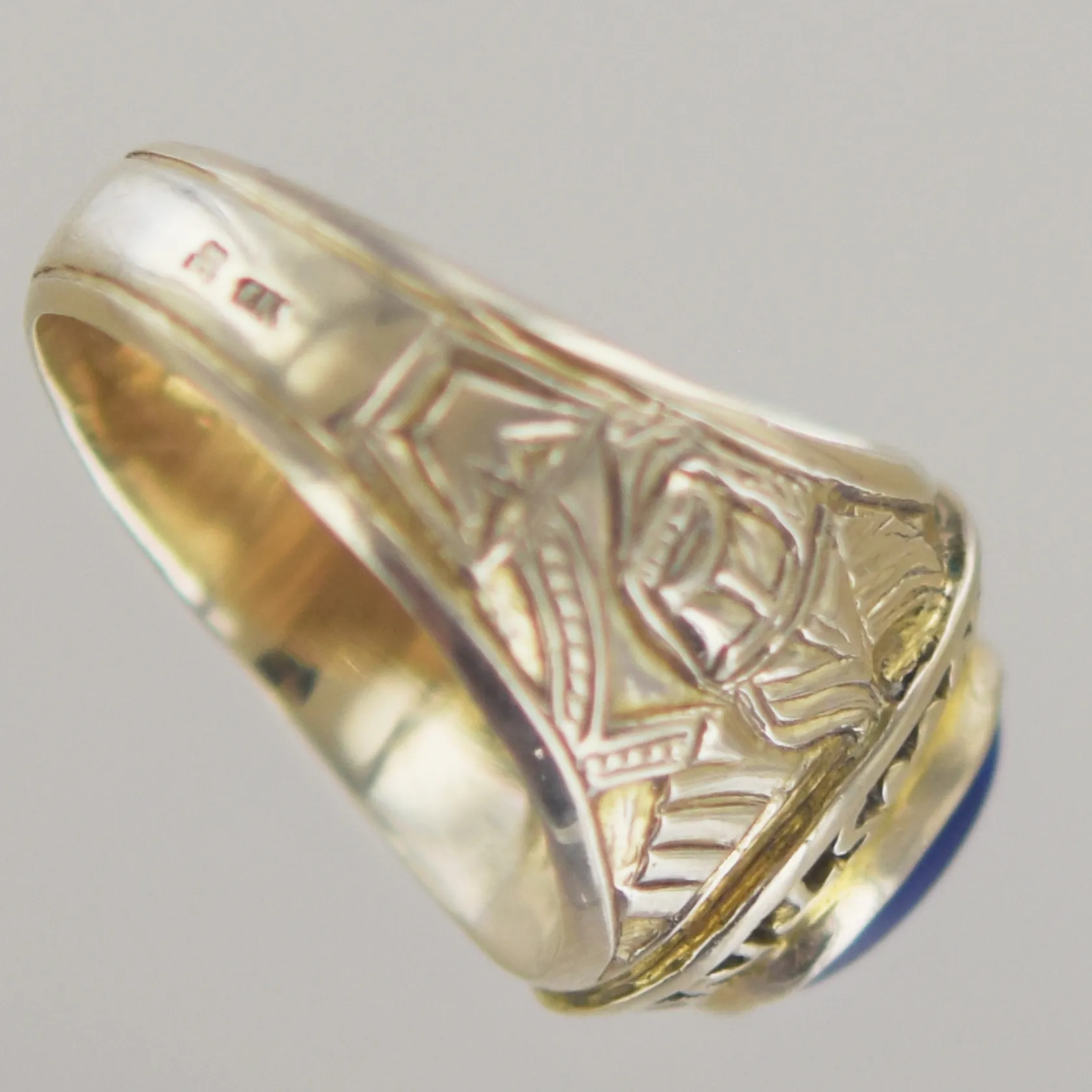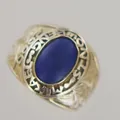 Ring med lapis lazuli, Ø 20,5 mm bredd 6-18 mm, 14k gravyr på klacken Vikt: 24,5 g.