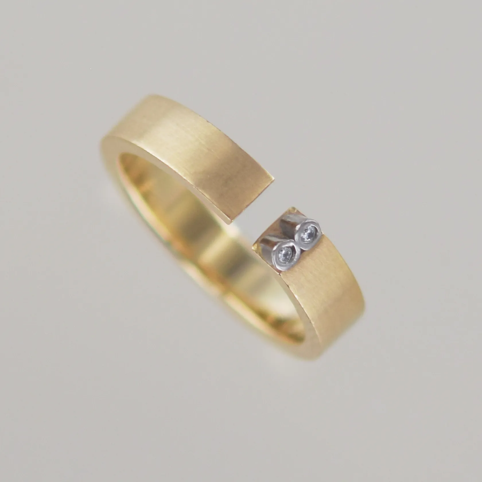 Ring öppen modell med 2 små diamanter, Ø 17,75mm B 4 mm, vitguld 18k Vikt: 6,8 g.