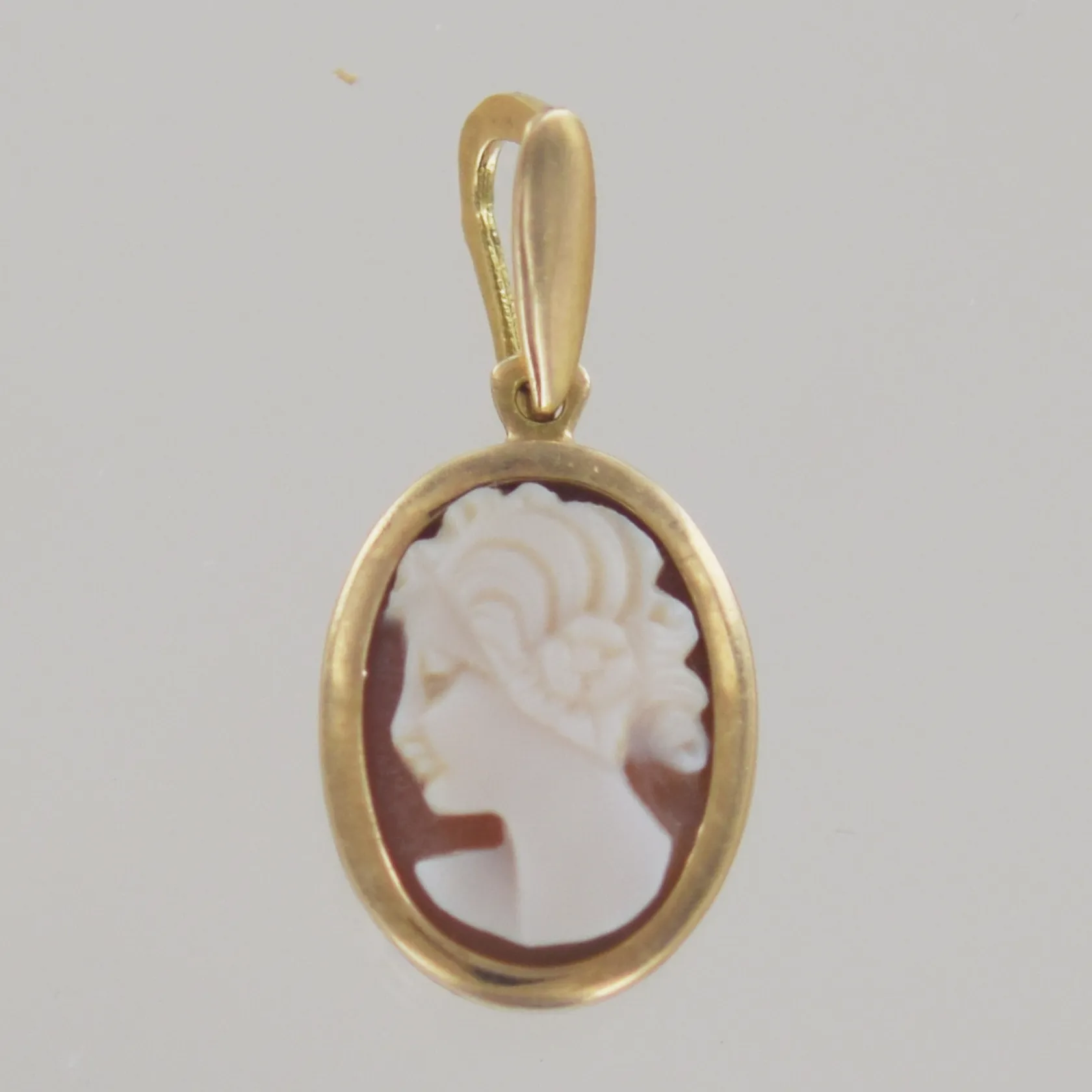 Hänge camé, L 2,5 cm x B 1cm, 18k guld på baksidan Vikt: 2,1 g.