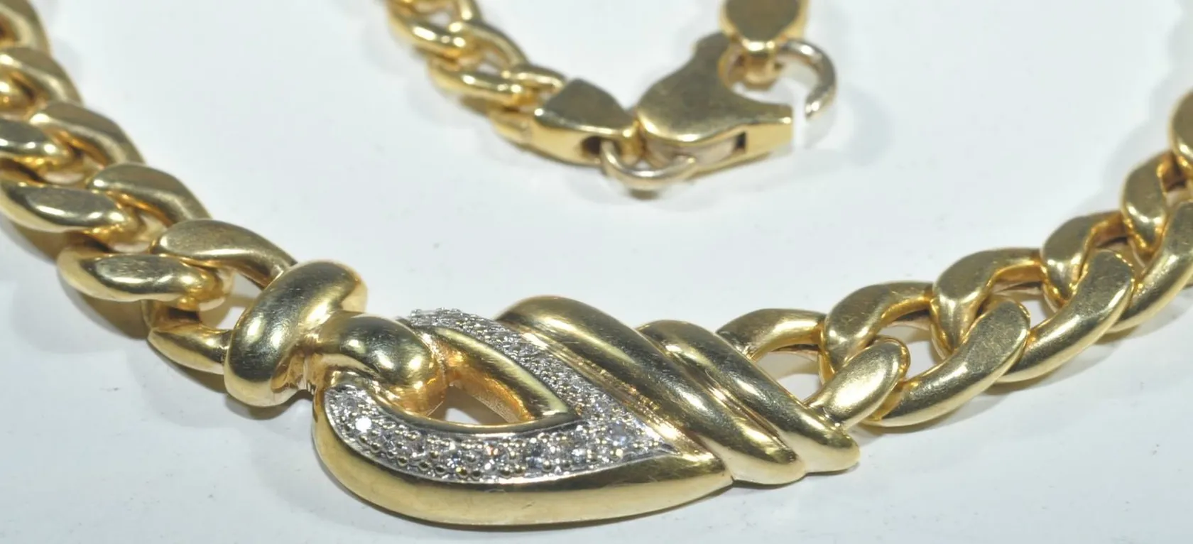 Collier med diamanter 0,21ct i set, längd 43 cm bredd 6-12 mm,18k Vikt: 28,2 g.