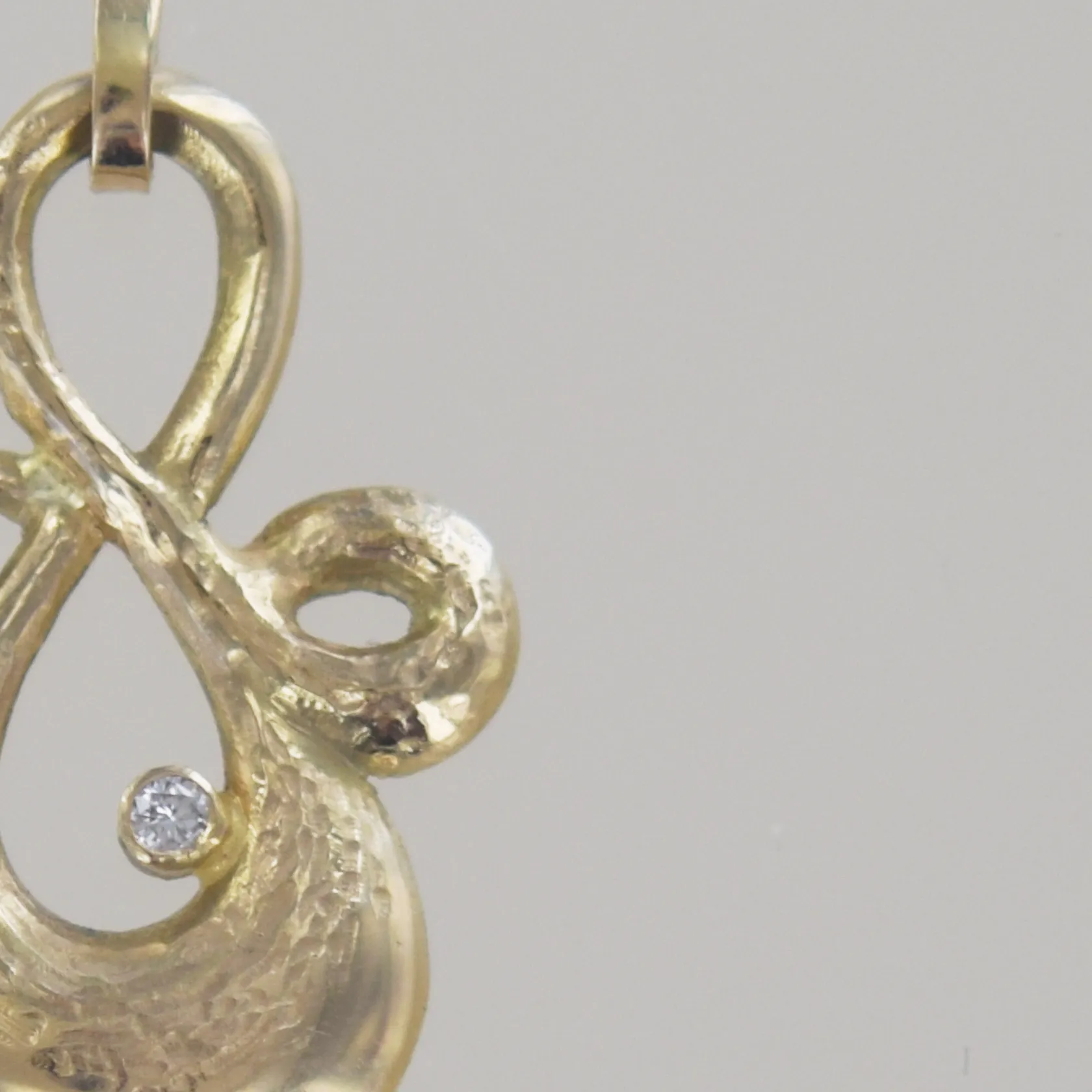Hänge handgjort med diamant 0,3ct, längd 3,2cm bredd 2 cm, 18k Vikt: 6,6 g.