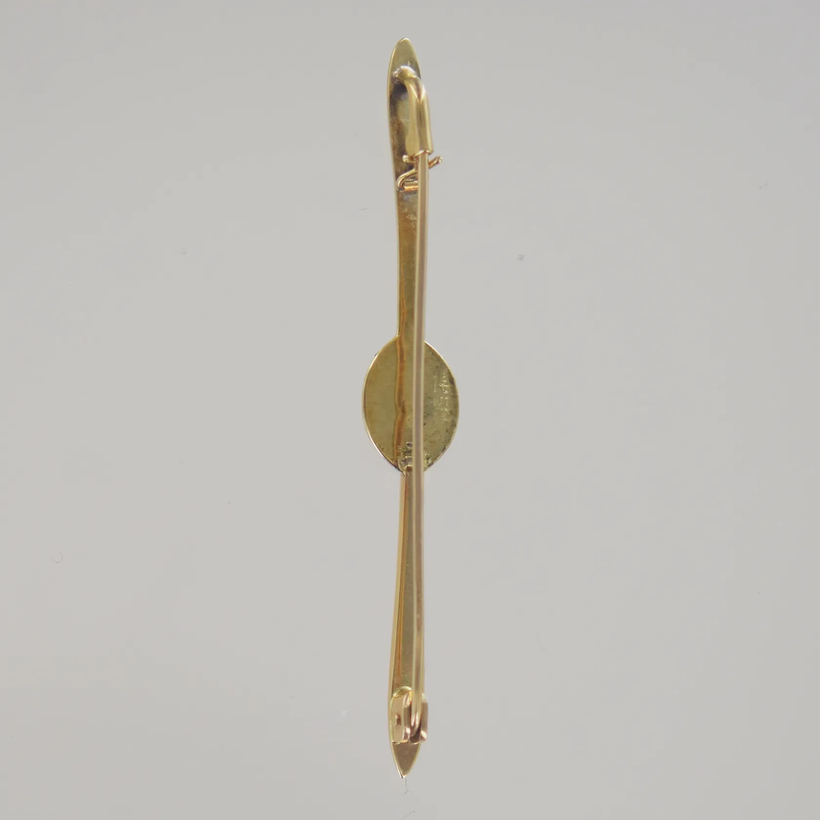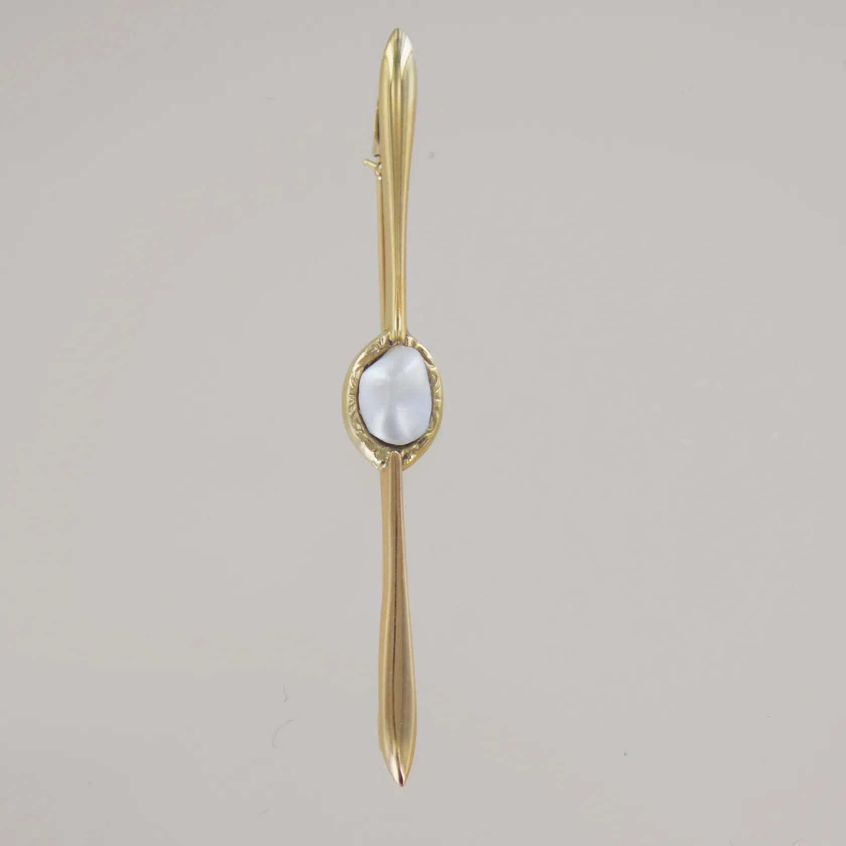 Slipsbrosch med pärla, längd 5,5 cm stenens bredd 7 mm, 14k Vikt: 2,6 g.