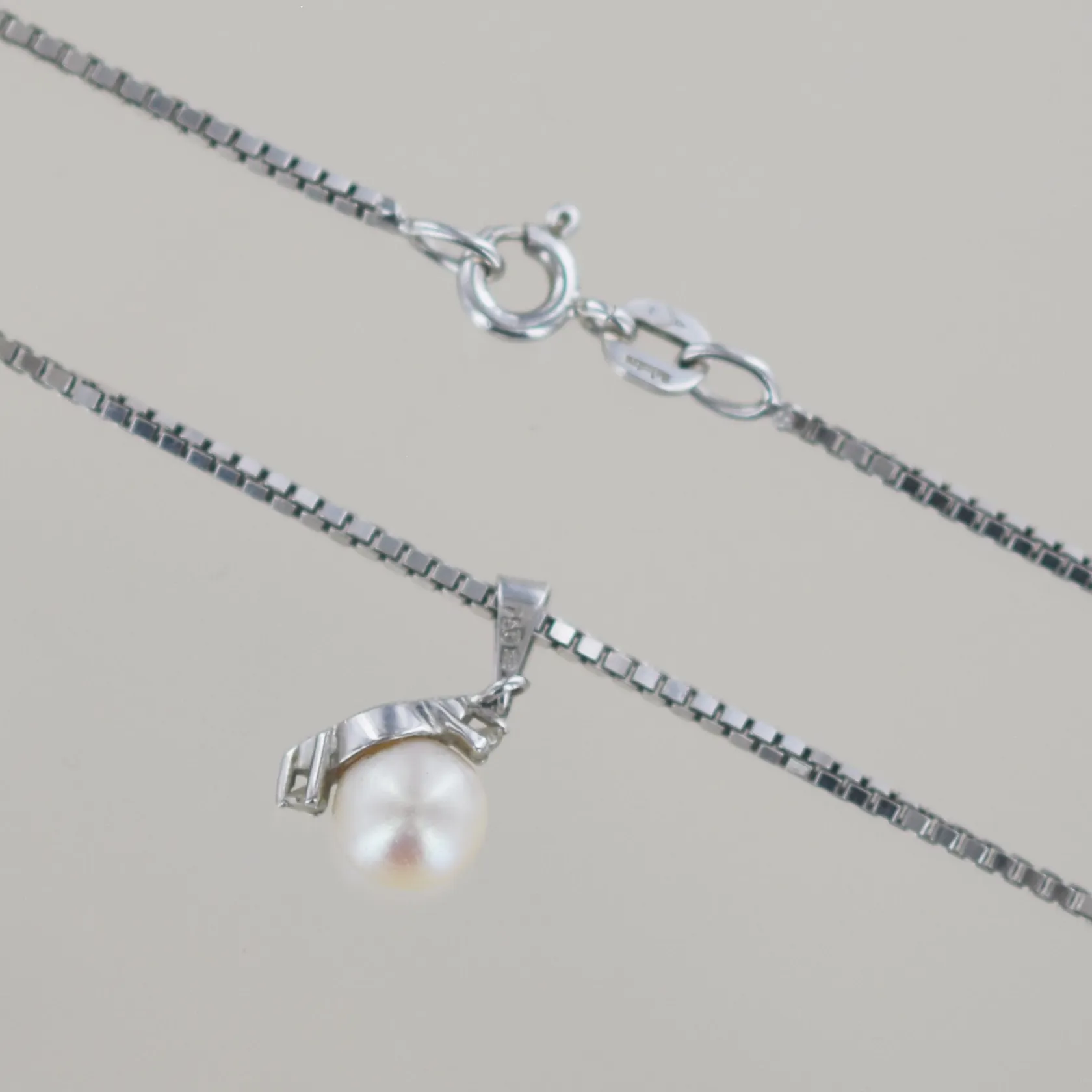 Halskedja venezia med hänge med 2 diamanter ct och pärla. Längd 42cm bredd 6 mm, hängets längd 1,5 cm, 18k Vikt: 5,2 g.