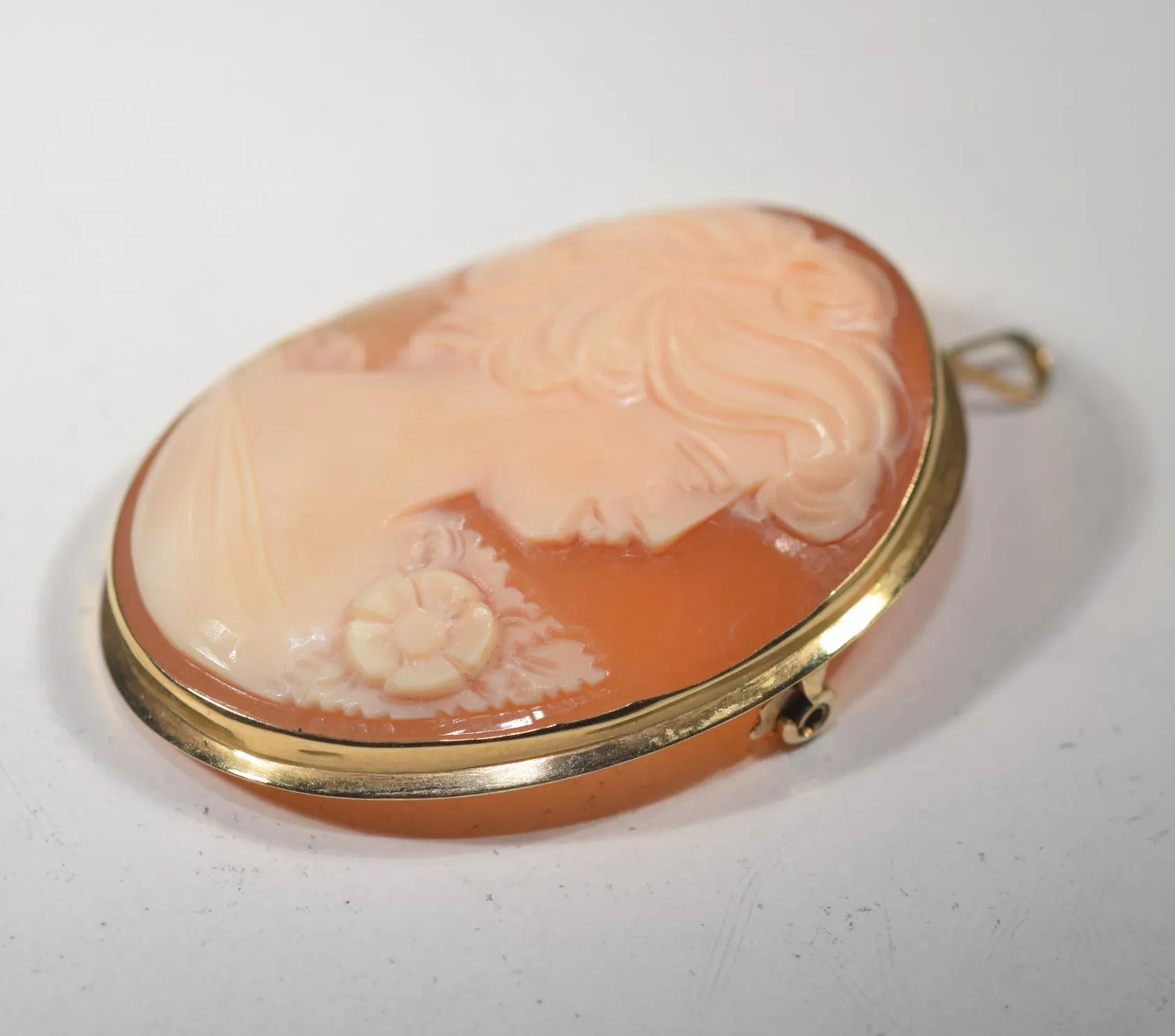 Hänge camé längd 5cm bredd 3,5cm, 18k Vikt: 7,2 g.