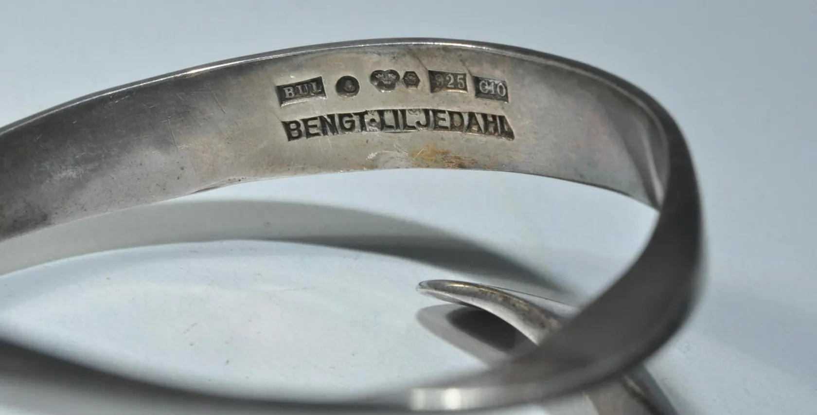 Armring av Bengt Liljedahl 42,9 gr inre mått 62 mm , Bred 2-10 mm ,silver 925/1000 Vikt: 42,9 g.