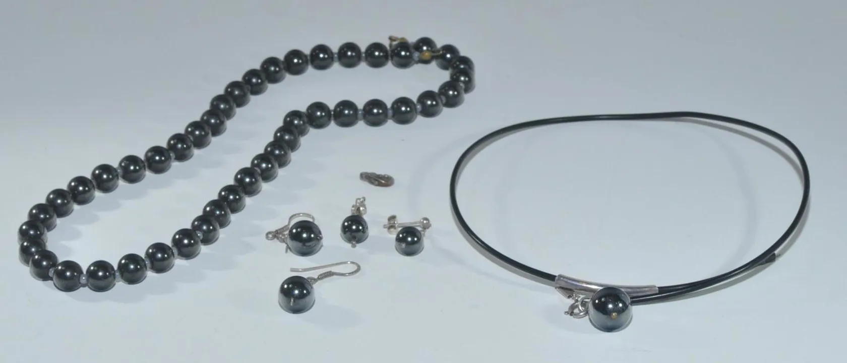 Div smycken av Hematit med silver 925/1000, plastcollier har defekt lås