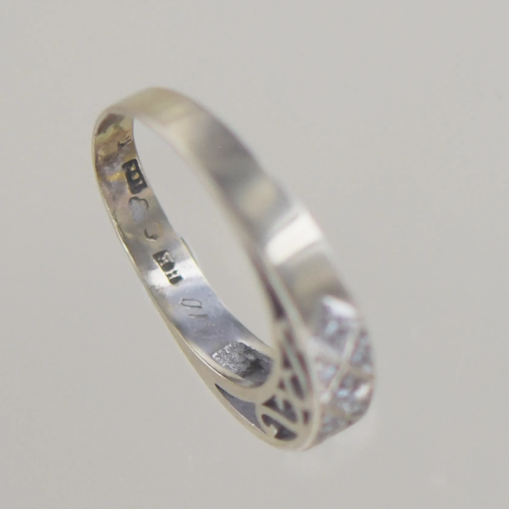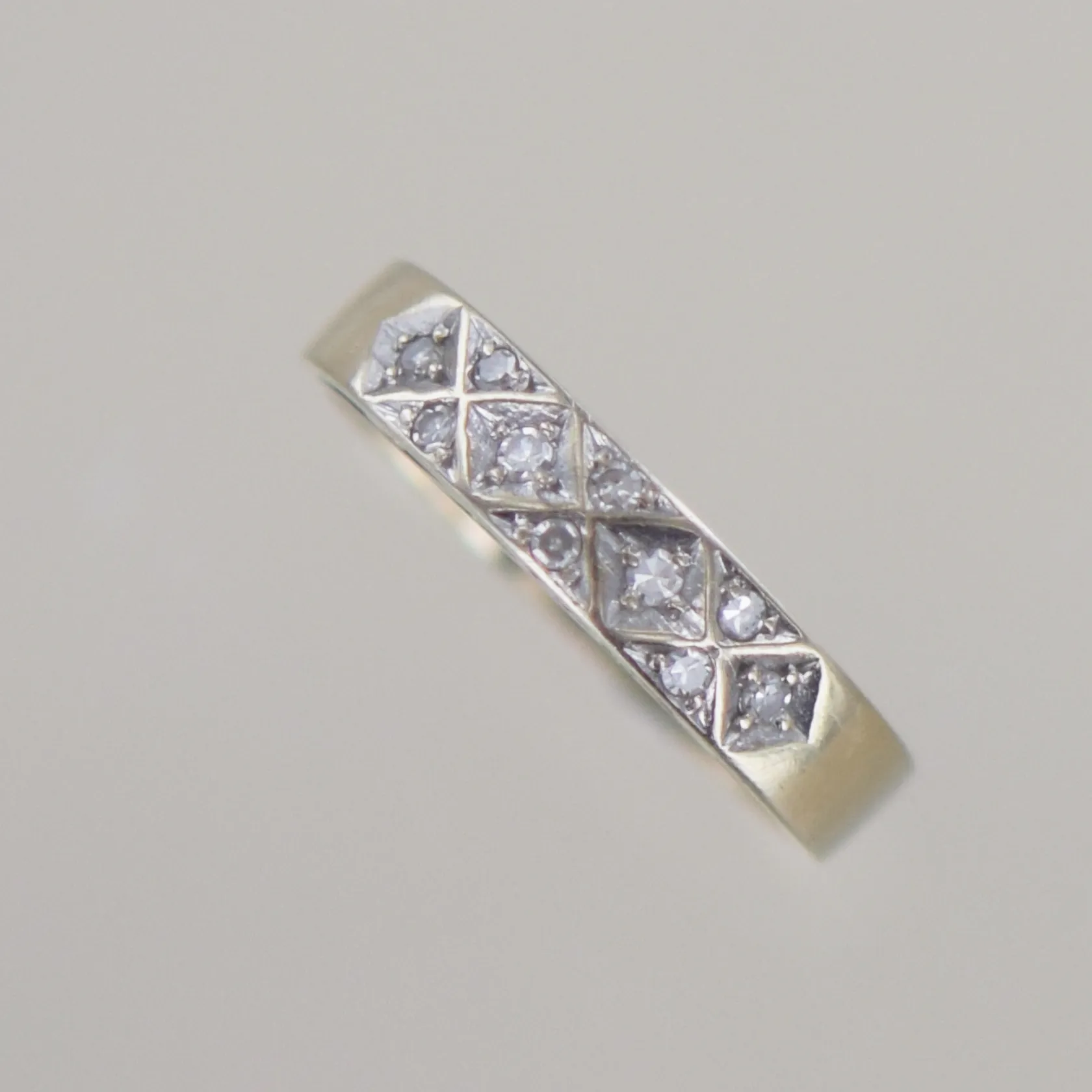 Ring med diamanter 0,10ct tot, Ø 17 mm bredd 3,30 mm, 18k lite ojämn skena Vikt: 3,2 g.